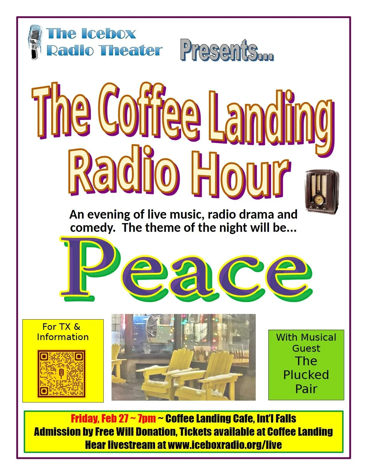 Enjoy an evening of radio and music live from The Coffee Landing Cafe. Can’t be there in person? Catch the video stream with an eTicket. Price = whatever you’d like to pay. Admission for this show, both live and online, is by free will donation.